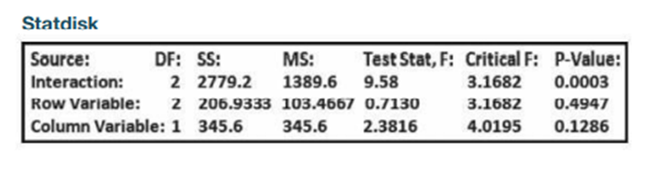 Pulse Rates If we use the data given in Exercise 1 with two-way analysis of variance, we get the accompanying display. What do you conclude?