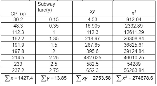 the best predicted subway fare for a time when the CPI reaches 500. What is wrong with this prediction?