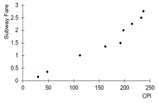 CPI and the Subway Use CPI>subway data from the preceding exercise to determine whether there is a significant linear correlation between the CPI (Consumer Price Index) and the subway fare.