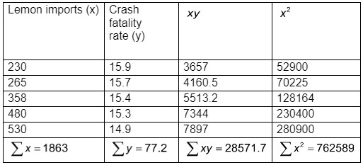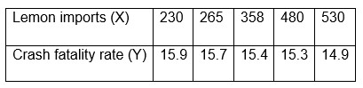 Using the listed lemon/crash data, find the best predicted crash fatality rate for a year in which there are 500 metric tons of lemon imports. Is the prediction worthwhile?