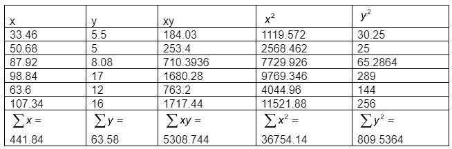 Bill (dollars) | 33.46 | 50.68 | 87.92 | 98.84 | 63.6 | 107.34 |