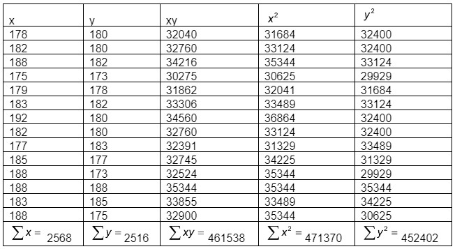 The regression equation is\(\hat y = 161.9 + 0.097x\).