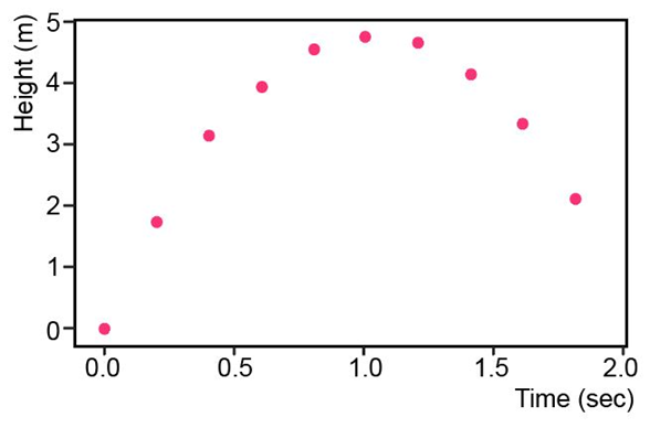Time and Motion In a physics experiment at Doane College, a soccer ball was thrown upward from the bed of a moving truck. The table below lists the time (sec) that has lapsed from the throw and the height (m) of the soccer ball. What do you conclude about the relationship between time and height? What horrible mistake would be easy to make if the analysis is conducted without a scatterplot?