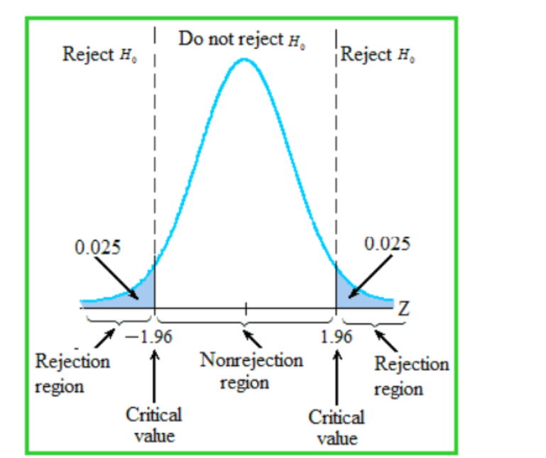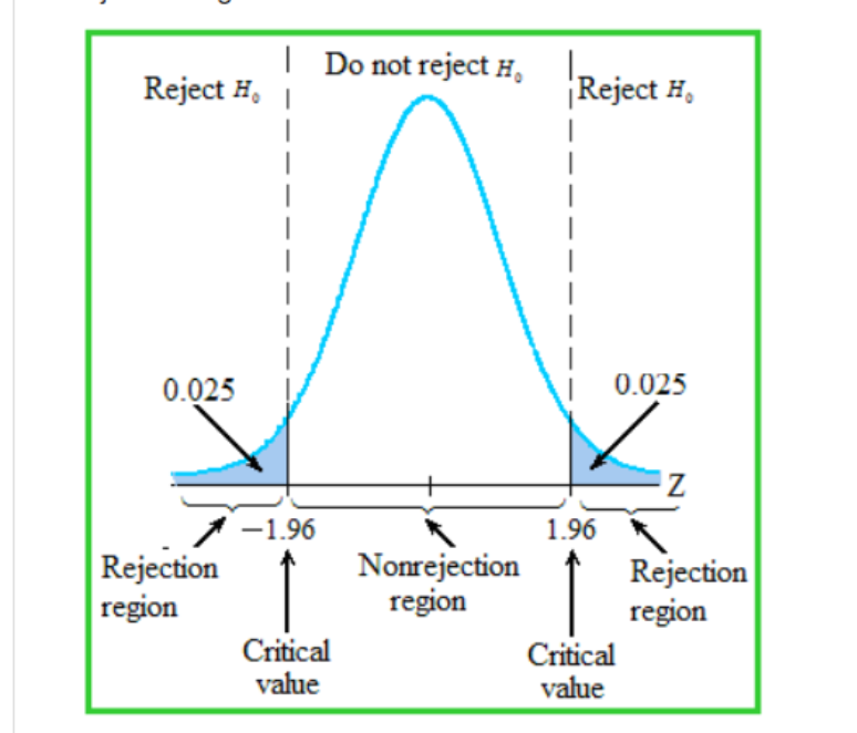(a) The rejection regions are z<-1.96 and z>1.96..