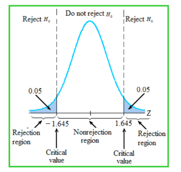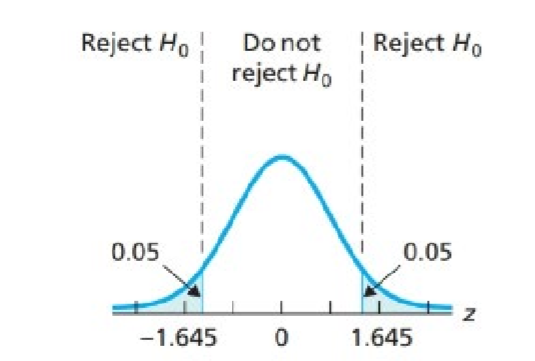 This exercise contain graphs portraying the decision criterion for a one-mean 2-test. The curve in each graph is the normal curve for the test statistic under the assumption that the null hypothesis is true. For each exercise, determine the