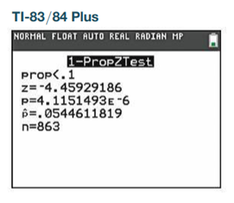 Adverse Reactions to Drug The drug Lipitor (atorvastatin) is used to treat high cholesterol. In a clinical trial of Lipitor, 47 of 863 treated subjects experienced headaches (based on data from Pfizer). The accompanying TI@83/84 Plus calculator display shows results from a test of the claim that fewer than 10% of treated subjects experience headaches.