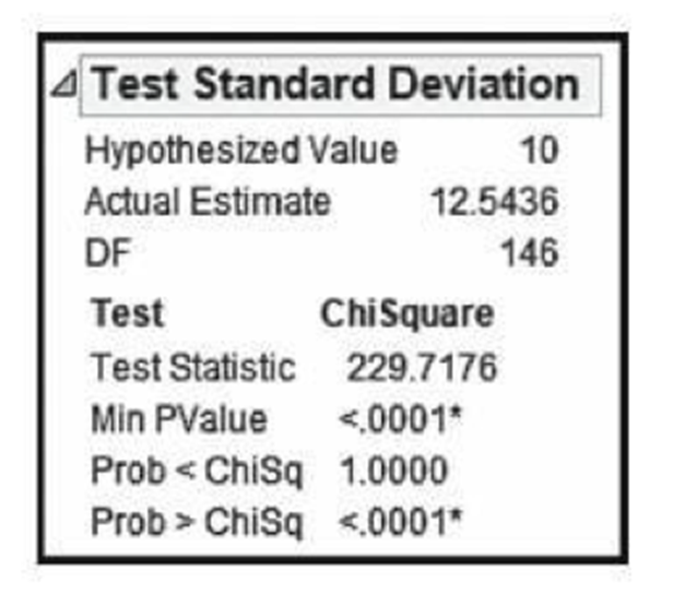 \(\begin{array}{l}{H_0}:\sigma = 10\\{H_1}:\sigma \ne 10{\rm{ }}\end{array}\)