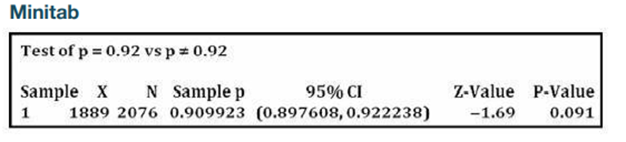 Cell Phone Ownership A Pew Research Center poll of 2076 randomly selected adults showed that 91% of them own cell phones. The following Minitab display results from a test of the claim that 92% of adults own cell phones.