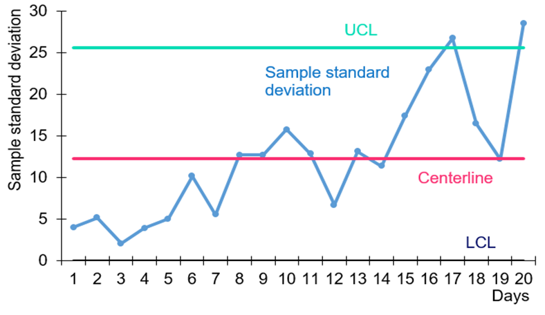 The referred R-chart is following the same pattern as the s-chart with different scale of observations.