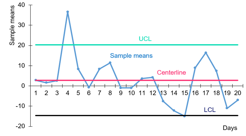 The pattern in the referred chart is different from the chart formed here. Here, both charts show statistically out of control processes.