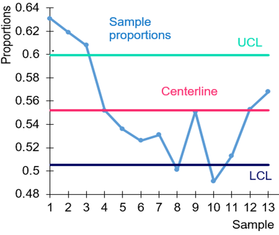 The following p chart is constructed for the given proportion of voters: