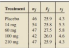 Denosumab and Osteoporosis. A clinical study was conducted to see whether an antibody called denosumab is effective in the treatment of osteoporosis in postmenopausal women, as reported in the article "Denosumab in Postmenopausal Women with Low Bone Mineral Density (New England Journal of Medicine, Vol. . No. , pp. ) by M. McClung et al. Postmenopausal women with osteoporosis were randomly assigned into groups that received either a placebo a six-month regimen of Denosumab at doses of mg, mg,mg, or mg. The following table provides summary statistics for the body-mass indexes (BMI) of the women in each treatment group.