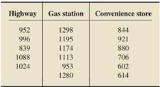 Losses to Robbery. The Federal Bureau of investigation conducts surveys to obtain information on the value of losses from various types of robberies. Results of the surveys are published in Population-at-Risk Rates and Selected Crime indicators, Independent simple random samples of reports for three types of robberies-highway, gas station, and convenience store gave the following data, in dollars, on the value of losses.
