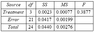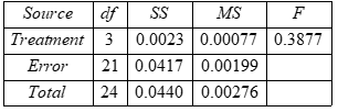 d. use a one-way ANOVA test to decide, at the\(5%\) significance level whether, the data provide sufficient evidence to conclude that a difference exists among the means of the populations from which the samples were taken.