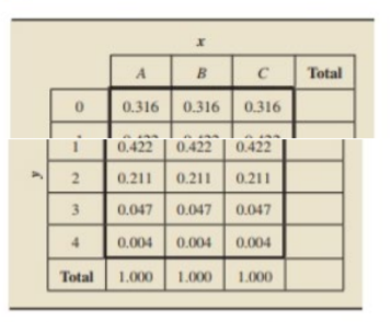 In this exercise, you are to consider two variables, and defined on a hypothetical population. Following are the conditional distributions of the variable corresponding to each value of the variable.