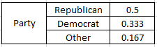 Part (d): Without doing any further calculation, determine the marginal distribution of political party affiliation?.