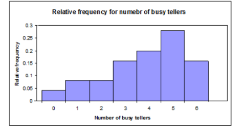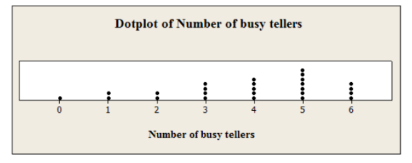 As a result, the number of busy tellers seen throughout 25 spot checks is 1, 2, 2,4,5,7, and 4 times.