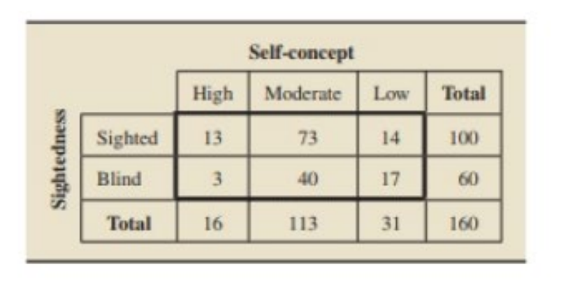 a. At the 5% significance level, do the data provide sufficient evidence to conclude that a difference exists in self-concept distributions between sighted and blind Indian adolescents?