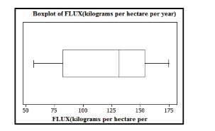 b)Interpretation: In the first year following Hugo, the middle 50% of ammonia fluxes is over 66 kilograms per hectare per year.