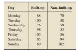 Daily Motorcycle Accidents. The Scottish Executive, Analy. tical Services Division Transport Statistics, compiles data on motor cycle accidents. During one year, the numbers of motorcycle accidents in Scotland were tabulated by day of the week for built-up roads and non-built-up roads and resulted in the following data .