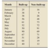 Monthly Motorcycle Casualties. The Scottish Executive, Analytical Services Division Transport Statistics, compiles data on motorcycle casualties. During one year, monthly casualties from motorcycle accidents in Scotland for built-up roads and non-built-up roads were as follows