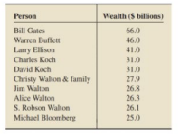 Billionaires' Club. Each year, Forbes magazine compiles a list of the richest Americans. As of September , the top 10 on the list are as shown in the following table.