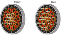 The following dashboard represents dart thrown by two players. Tracey and Joan.