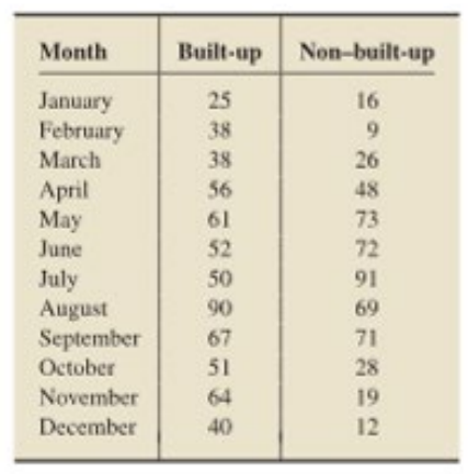 Part (a) Without doing any calculations, make an educated guess at which of the two data sets, built up or non built or non built up has the greater variation.
