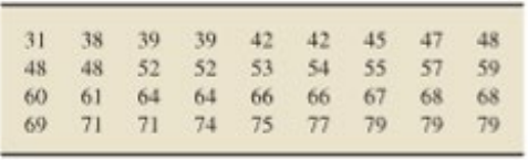 Refer to Problem 20. The ages of the 36 millionaires sampled are arranged in increasing order in the following table.