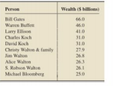 Billionaires' Club, Each year, Forbes magazine compiles a list of the richest Americans. As of September 19, . the top 10 on the list areas in the following table.