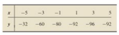 | y | -32 | -60 | -80 | -92 | -96 | -92 |