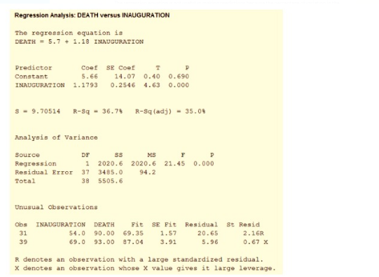 c) It can be interpreted as the linear relationship between the inauguration and death accounts for percent of the variability in death.