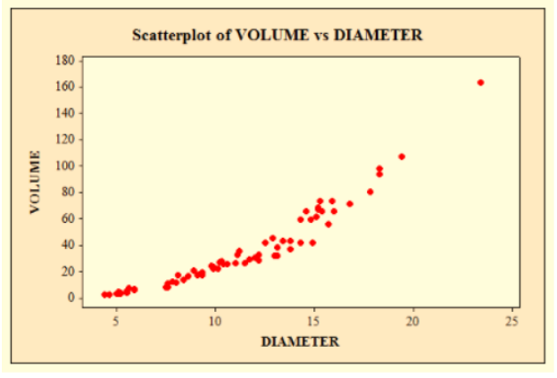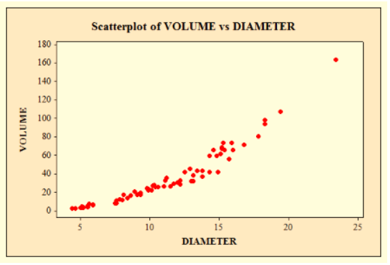 Shortleaf Pines. The data from Exercise for volume, in cubic feet, and diameter at breast height, in inches, for shortleaf pines are on the Weiss Stats site.