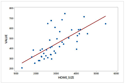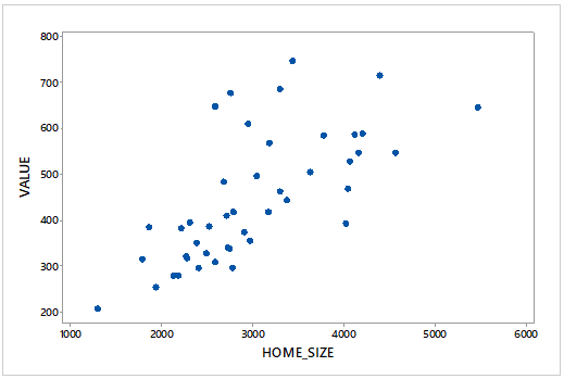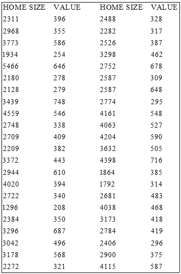 On the WeissStats site are data on home size (in square feet) and assessed value (in thousands of dollars) for the same homes as in Exercise \(4.73\).