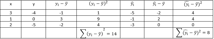 Part (a): The three sums of squares, SST, SSR and SSE are 14,8and 6respectively.
