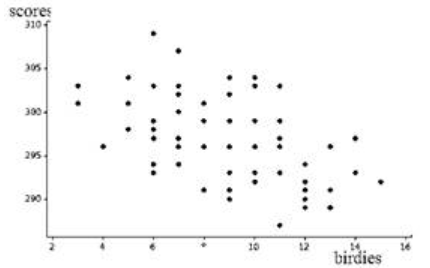 c). The inversely proportionate relationship between the two variable numbers of Birdies and their scores is indicated by the negative linear correlation coefficient.