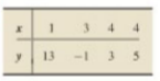 a. Find the regression equation for the data points, use the defining formulas in definition 4.4 to obtain