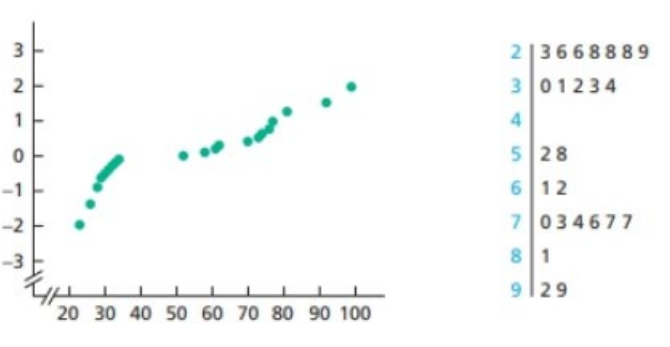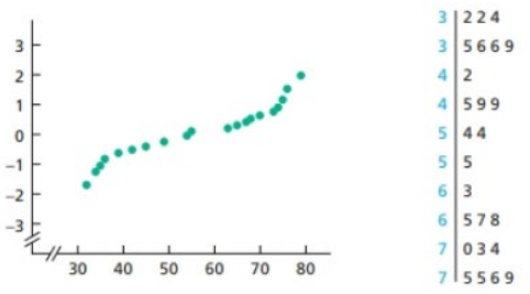 The normal probability curve and stem-to-leaf diagram of the data are shown in figure; is known.