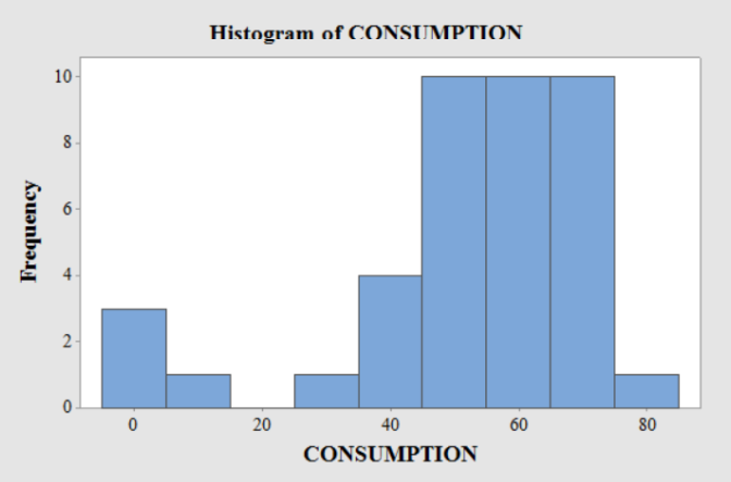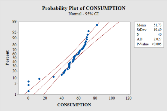 a. Obtain a normal probability plot, a boxplot, a histogram, and a stem-and-leaf diagram of the data on beef consumptions.