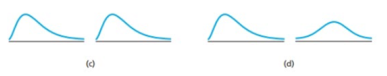 Each pair of graphs in Fig. shows the distributions of a variable on two populations. Suppose that, in each case, you want to perform a small-sample hypothesis test based on independent simple random samples to compare the means of the two populations. In each case, decide whether the pooled -test, non pooled -test, or neither should be used. Explain your answers.