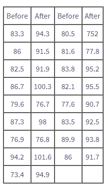 Anorexia Treatment. Anorexia nervosa is a serious eating disorder, particularly among young women. The following data provide the weights, in pounds, of 17 anorexic young women before and after receiving a family therapy treatment for anorexia nervosa. [SOURCE: D. Hand et al. (ed.) A Handbook of Small Data Sets, London: Chapman \& Hall, 1994; raw data from B. Everitt (personal communication)!