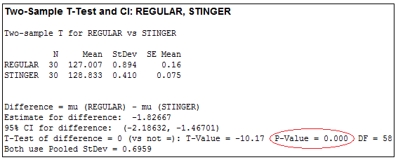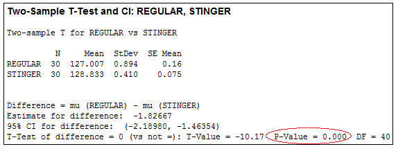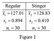 c. At the \(5%\) significance level, do the data provide sufficient evidence to conclude that on average ball velocity is less with the regular tee than with the Stinger tee? Perform the required hypothesis test by using both the pooled \(t-\)test and the nonpooled \(t-\)test and compare results.