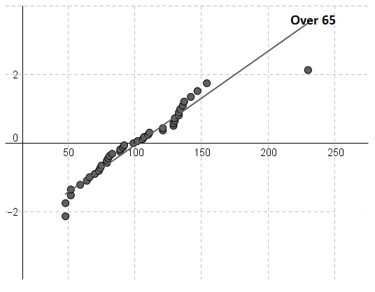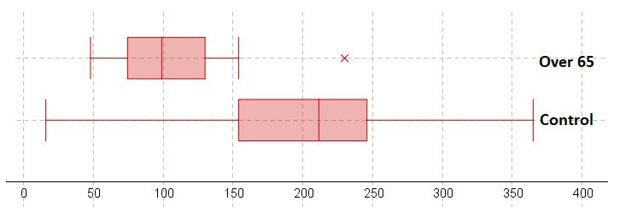 Ertugrul et al. conducted a study to determine the association between insulin growth factor 1 (IGF-1) and bone mineral density (BMD) in men over \(65\) years of age. The researchers published their results in the paper "Relationship Between Insulin-Like Growth Factor 1 and Bone Mineral Density in Men Aged over \(65\) Years". Forty-one men over \(65\) years old were enrolled in the study as was a control group consisting of \(20\) younger men, ages \(19-62\) years. On the WeissStats site, we provide data on IGF-1 levels, based on the results of the study. Use the technology of your choice to do the following.