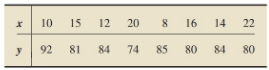Following are the data on total hours studied over \(2\) weeks and test score at the end of the \(2\) weeks from Exercise \(14.27\).