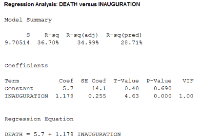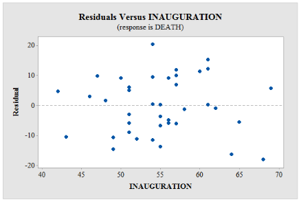 Part c. The assumptions for the regression inferences are not violated for the variables death and inauguration.