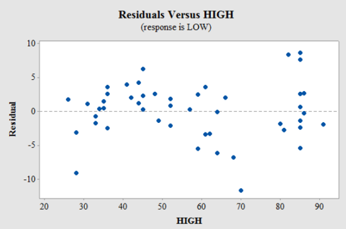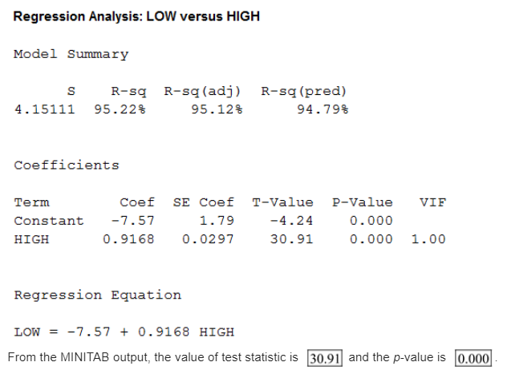 b). As a result of the data, we may conclude that the predictor variable "high" temperature is beneficial for forecasting "low" temperature at the level.
