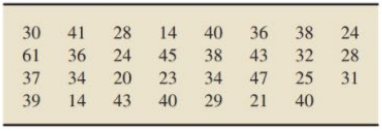 Patients who undergo chronic hemodialysis often experience severe anxiety. Videotapes of progressive relaxation exercises were shown to one group of patients and neutral videotapes to another group. Then both groups took the State-Trait Anxiety Inventory, a psychiatric questionnaire used to measure anxiety, on which higher scores correspond to higher anxiety. In the paper "The Effectiveness of Progressive Relaxation in Chronic Hemodialysis Patients", R. Alarcon et al. presented the results of the study. The following data give score results for the group that viewed relaxation-exercises videotapes. Use limit grouping with a first class of 12-17 and a class width of 6.