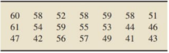 Dementia is a person's loss of intellectual and social abilities that is severe enough to interfere with judgment, behavior, and daily functioning. Alzheimer's disease is the most common type of dementia. In the article "Living with Early Onset Dementia: Exploring the Experience and Developing EvidenceBased Guidelines for Practice" (Alzheimer's Care Quarterly, Vol. 5 , Issue 2, pp. 111-122), P. Harris and J. Keady explored the experience and struggles of people diagnosed with dementia and their families. A simple random sample of 21 people with early-onset dementia gave the following data on age, in years, at diagnosis. Use limit grouping with a first class of and a class width of 5 .
