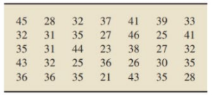 the State-Trait Anxiety Inventory, a psychiatric questionnaire used to measure anxiety, on which higher scores correspond to higher anxiety. In the paper "The Effectiveness of Progressive Relaxation in Chronic Hemodialysis Patients" (Journal of Chronic Diseases, Vol. 35, No. 10), R. Alarcon et al. presented the results of the study. The following data give score results for the group that viewed relaxation-exercises videotapes. Use limit grouping with a first class of 12-17 and a class width of 6 .