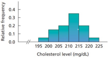 Control and Prevention, the average cholesterol level for children between and years of age is . A pediatrician who tested the cholesterol levels of several young patients was alarmed to find that many had levels higher than . The following relativefrequency histogram shows the readings for some patients who had high cholesterol levels.